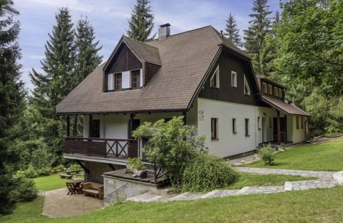 Cosy cottage "Labaika", 3 storeys, semi-detached, surrounded by trees. 500 m from the centre of Harrachov, in a quiet, elevated position, along the wooded area, 400 m from the skiing area. For shared use: property. Garden furniture, barbecue, fireplace. In the house: storage room for skis, central heating system. Except in winter 300 m. Parking at the house, in winter 400 m. Shop, supermarket 500 m, restaurant, bus stop "Harrachov, centrum" 500 m, railway station "Harrachov" 3 km, outdoor swimming pool 1.4 km. Tennis 2 km, indoor tennis centre 1.4 km, ski lift 400 m, chair lift, slopes, ski rental, ski school, children's ski school, cross country ski track 10 m. Nearby attractions: Bobová dráha 600 m, Muzeum skla 1 km, Skokanské můstky Harrachov 1 km, Mumlavský vodopád 2 km, Vosecká bouda, Dvořačky, Huťský vodopád 9 km, Vodopád Kamienczyka, Szklarki (PL) 12 km, Jablonec nad Nisou 27 km, Liberec 39 km. Well-known ski regions can easily be reached: Čertova hora 400 m, Zákoutí 1,4 km, Ryžoviště 2 km, Kořenov 7 km, Rokytnice nad Jizerou 15 km. Well-known lakes can easily be reached: Vodní nádrž Souš 15 km. Hiking paths: Western City(Pl) 40 km, Karpacz Wang,Park miniatury Kowary (Pl) 44 km, Giganteria Piechowice 23km, Dinopark(Pl) 15 km. Please note: the owner lives in the same residence. In winter, luggage can be unloaded/loaded at the house only if snow conditions permit. In winter, the road to the property (400 m) is not maintained.