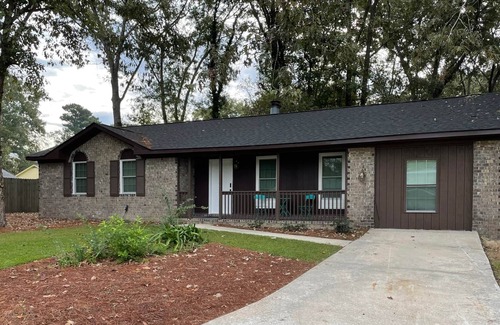 Are you looking for the perfect place for a getaway with comfy accommodations? Welcome to Ladson's Lucky Charm, the perfect place for your next visit in town! Everything you need in a charming 3 bedroom, 1.5 bathroom, 1469 square foot brick ranch home with TWO main living areas and TWO dining areas. Conveniently located in Ladson SC- close to shopping, dining, entertainment and more! You will be within a 30-45 minute drive to Downtown Charleston, the beaches, and many more of the amazing sites our area has to offer! You will be welcomed by the attractive landscaping, mature trees, and inviting front porch -perfect for enjoying a tall glass of sweet tea. As you enter, you will immediately feel at home with the cozy household accommodations and the beautiful décor. The home features a living room, a spacious stocked kitchen that is open to the dining room -ideal for enjoying the company while you eat. Off the living room is a large den/TV room and an additional dining area. The home sleeps 6 in a full bed, a queen bed, and a king bed. The home is equipped with a washer and dryer, all appliances, and the amenities/essentials you'll need to start your stay with us! The large fenced in back yard is full of mature trees and offers a peaceful spot to relax after your long day. What more could you ask for?!?! We look forward to hosting you soon!