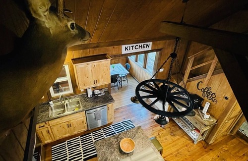 We are ready for everyone to enjoy one of our newest addition to Lake Cumberland Vacation Rentals. This is a true rustic/upscale cabin with all the luxuries of home. If you want to be close to the lake and close to nature this is for you. The cabin is located less than 2 miles from the Jamestown Marina, in the Harbor Springs community. Its surrounded by mature trees where you can see nature at work and enjoy tranquility on the huge front porch while drinking your coffee in the morning or while having your favorite beverage in the evening. The downstairs offers an open floor plan for entertaining while preparing meals. There are two bedrooms located on the main floor. There is an awesome game room sitting above the living room and kitchen that gives access across the the breezeway to the third bedroom.