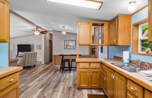 A perfect home for large groups or families, this cottage includes 3 bedrooms and 2 full baths. The master bedroom is located just off the kitchen and has a queen bed as well as attached full bathroom. Down the hall, you’ll find a second bedroom with queen bed, a third bedroom with 2 twin beds, and full guest bathroom. There is also a sofa bed in the living room.