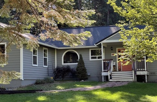 Tucked in the trees lies this large home in Mt. Shasta that will accommodate up to approximately 8 people. With acreage to roam, nestled among gorgeous trees including oak, pine, and cedar.