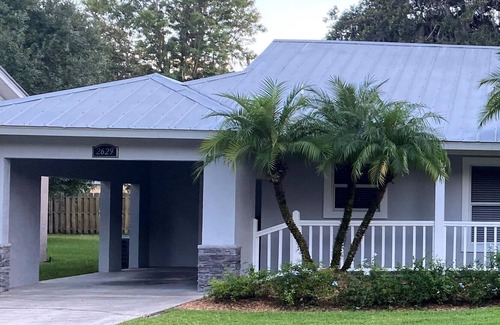 Enjoy a peaceful retreat at Lake Jackson located on a secluded street in downtown Sebring. Large, lush oaks and gardens cover this property on a dead-end street. Owner's house is lakefront and VRBO guest cottage is adjacent. Enjoy the clear, spring-fed Lake Jackson and owner's dock for swimming, fishing or boating. You will also enjoy access to owner's screened-in pool and hot tub lakeside. You will love this modern, freshly renovated cottage with full kitchen, air-conditioned laundry room, 2 bedrooms, 1 bathroom, living room , and dining area. Bedrooms each have a queen bed and large closet. Sofa in living room can be turned into a bed for extra accommodations. Additional amenities include large, flat-screen TV with satellite in living area, keurig coffee maker, and a private driveway with covered car port attached to the rental. Minutes from downtown Sebring with unique shops and restaurants. You can walk or bike there using the sidewalk that goes around our beautiful lake. Ten minutes from Sebring Raceway and multiple golf courses. A 10% discount is offered on the nightly rate if you book for over 30 days.