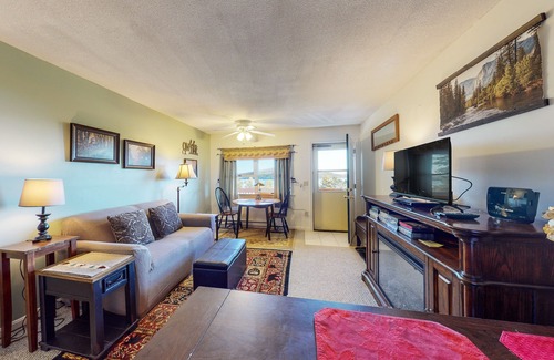 Inside, the condo features every essential. There's a well-equipped kitchenette (with a refrigerator, an air fryer, a hot plate, a microwave, and a coffee maker) to assist with easy meals, a bistro table by the window where you can dine with a view, and a smart TV to stream your favorite movies in the evenings. Enjoy a comfortable bedroom, a full bathroom, and high-speed WiFi to help you plan tomorrow's excursions.