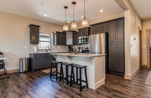 This lovely retreat boasts 5 bedrooms (all with ensuite baths plus an extra half bath), 48-inch TVs in all the bedrooms, and 55-inch TVs in the living rooms. There is a covered patio with fire pit. Relax and enjoy in the entertainment area, featuring a foosball table and Playstation4 and stand up arcade game with over 100 games and board games