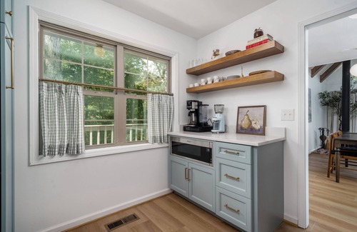 • Main Level: King BR (Tuft & Needle mattress), open living room w/ Smart TV and window wall & queen sleeper sofa, full kitchen + coffee bar, dining for up to 6, full bathroom, washer/dryer.