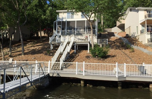 The family living area overlooks the lake and has a large TV / SONOS entertainment system and includes wifi and cable. Three bedrooms comfortably sleep 4 adults and 4 children, with two queen beds, full size mattress bunkbeds and 2 adult on queen sleeper sofa in the living room. Master bedroom includes a master bath. NOTE- 2 PARKING SPACES ONLY. Any trash on dock area needs to be brought up OR maybe subject to extra fees. Plenty of restaurants, shops and water activities . Located between Mile Marker 3 & 4. Also, a 10 minute drive to Bagnell Dam and the strip!