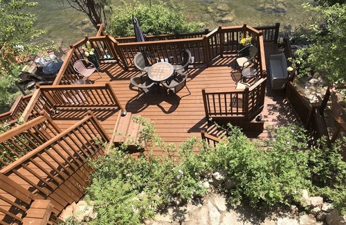 BBQ, Washer/dryer and iron. Electric Fireplace, free wifi, TV with DVD player As well as several DVD movies to choose from. The cottage boasts two outside decks as well as three outdoor levels of entertaining areas. All complete with loungers and patio furniture to take In all the sun! BEST feature is the LARGE patio area just steps off the water with the largest outdoor space at Secret Point. Private bouy for use only by cottage 12 tenants, please let us know before hand if you plan to bring a boat as well as the size of boat. BBQ provided as well as some outdoor fun supplies (tubes, dingy, water guns ...)