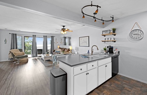 Gather the gang for a lakeside stay at this 2-bedroom, 2-bathroom vacation rental in Kimberling City with step-free access! Nestled on the shores of Table Rock Lake, this condo provides guests with a kitchen, a fireplace, modern amenities, and a private balcony with stunning lake views. Between days on the lake, hop in the car and head to Silver Dollar City for a day of family fun or venture to the Talking Rock Caverns for an outdoor adventure. After, enjoy a dip in the community pool!