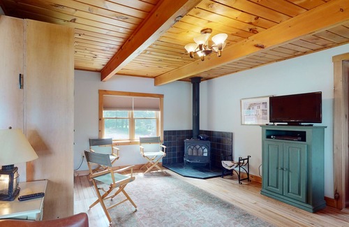 Comfortable seating and a wood-burning stove provide cozy comfort for family gatherings in the living room. The TV is streaming-enabled so you can stay up to date on all your favorite programs and also comes equipped with a VCR for classic home movie nights. You'll find the kitchen well-equipped with all the major appliances and essentials for home-cooking convenience. Additional perks include partial air-conditioning and a private washer/dryer.