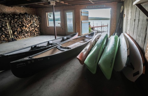 Outside, you'll discover a wealth of amenities to enhance your lakeside experience, including a spacious dock for your boat (available from Labor Day to Columbus Day), watercraft like kayaks, canoes, and stand-up paddleboards (available from Labor Day to Columbus Day), and fishing gear for the angler in your group. Fire up the gas grill for lakeside barbecues, dine on the lake-view deck, or relax in multiple outdoor seating areas.