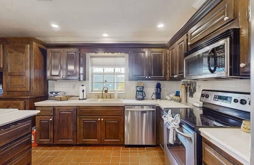Enjoy a large, open-concept kitchen stocked with all the essentials-including cookware, utensils, dishes, and appliances for all of your culinary needs. This kitchen features a large center island that seats 6 people, with a spacious dinning room table that will accommodate 9 people - Perfect for preparing family meals or hosting a dinner night in! Our Weber grill is ideal for awesome BBQ's.