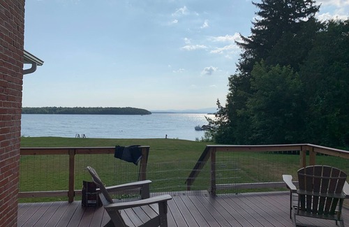 Located on the shore of Lake Champlain, this immaculate and comfortable vacation home boasts an acre and a half of property that includes a deck, a large patio with a fire pit, and a grassy yard that stretches out to where stairs lead down to a private beach. With 250 feet of lake frontage, a dock, two kayaks, a canoe, a stand-up paddle board, and a mooring for those who wish to bring or rent a motorboat or sailboat, guests can find a whole host of outdoor activities without ever leaving the back yard.