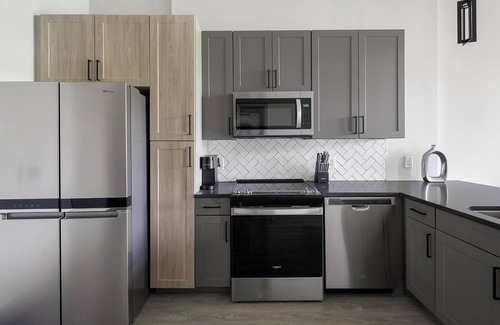 Experience a vibrant stay at Abberly Foundry, a mid-century modern gem in Midtown Nashville. Our fully-furnished apartments are designed for flexible monthly or extended stays and are complete with full kitchens, in-unit laundry, and stunning downtown views. Recharge in style with amenities like a rooftop sky lounge, resort-style pool, and state-of-the-art fitness studio. You'll also enjoy access to coworking spaces and a pet spa.
