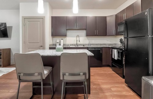 Wake up to mountain views and city perks in the heart of Sandy, Utah. Perfectly located for monthly or extended stays, Dry Creek at East Village puts you just steps from local shops, scenic trails, and the TRAX station. Enjoy fully-furnished apartments with full kitchens featuring granite countertops, smart home tech, in-unit laundry, and spacious walk-in closets. Lounge by the pool, soak in the hot tub, or head out to explore nearby outdoor adventures and downtown attractions.
