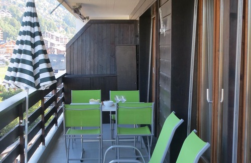 In centre of 4 valleys domain. Located in Centre of village with great views on the mountains, Rhone valley and village. Large kitchen and living area, indoor swimming pool. 3 bathrooms. Large balcony 40sqm. Refurbished in 2009.