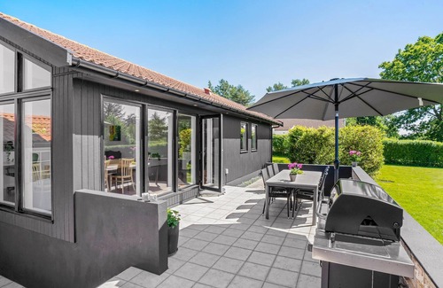 Experience a fantastic time out with your family or friends in this spacious vacation home with a large garden. The high windows let a lot of light into the living spaces, creating a pleasant and airy atmosphere. Take advantage of the beautiful terrace and garden to spend time in the fresh air and enjoy the sun. The children can have a wonderful time on the lawn and playground equipment and in the evening they will surely be happy about homemade stick bread at the location fire.