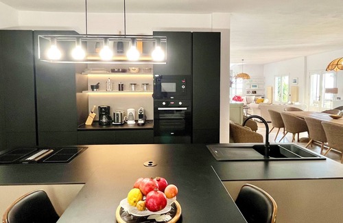 ☑︎ very complete kitchen equipment: dishwasher, ICE MACHINE, food processor, pastry robot, EGG COOKER, blender, electric kettle, insulated coffee maker, Nespresso coffee maker, microwave, toaster, induction hob , oven, extractor, fridge and freezer, electric juicer, weighing scale, SMALL GROCERY (salt, pepper, olive oil, vinegar, sugar, spices, assorted teas), dishwasher tablets, trash bags. ..