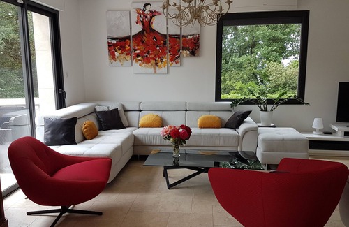 This very bright south-facing villa has large bay windows giving access to several terraces, one of which is 50m2. It is equipped with a gas BBQ and outdoor furniture for convivial meals.