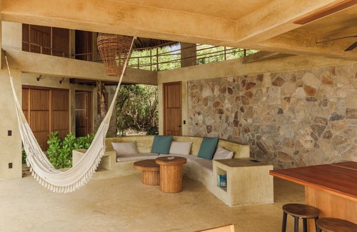 On the pristine sands of Agua Blanca, perfectly positioned between Mazunte and Puerto Escondido (20 min), UtopiAmar offers stunning sea views amidst palm trees and mangroves. This retreat features a charming room in a spectacular front beach house, crafted with natural stone and palm roofs, emphasizing thoughtful design and luxury. Indulge in the infinity pool, or enjoy the beachfront paradise and be amazed by this amazing secret spot on a virgin beach in Agua Blanca