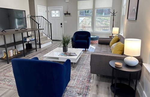 This is the perfect place for business travelers, couples, or families looking to explore Charlotte! Your professionally cleaned, spacious retreat features a cozy living room and 5 bedrooms, providing a peaceful haven for any traveler. The living room has a modern theme and a SmartTV with games the whole family can enjoy. The kitchen also provides everything you need to prepare and cook meals in your home away from home and FREE coffee for those needing an extra boost in the morning! You will also find an iron and ironing board to help you look your best!