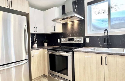 Laissez-vous charmer par ce loft moderne et accueillant! Idéal pour une escapade en solo ou en duo, il offre un lit queen confortable, une cuisine entièrement équipée, accès à une laveuse-sécheuse et un stationnement gratuit. Tout ce qu’il faut pour un séjour sans tracas, dans un espace chaleureux et bien pensé!