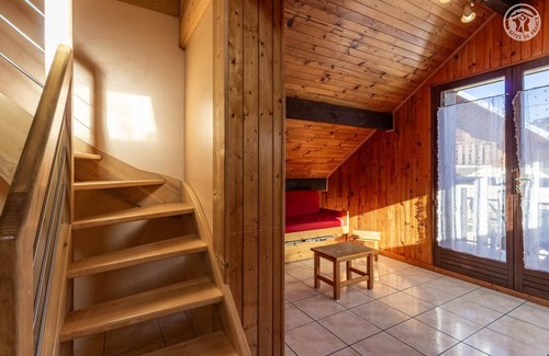 4 gîtes and a sports shop in the same building. 2nd floor: living room-kitchen lounge area (2 single pull-out beds 90 x 90 cm), 1 bedroom (1 double bed 140 x 190 cm), 1 bedroom in the attic (2 single bunk beds 90 x 190 cm), bathroom (shower), separate toilet. Balcony. Washing machine and dryer in shared laundry room 200m away (paid access: 1 free token; beyond that, tokens are payable). Shared grounds 200m away with barbecue and outdoor dining area. Total floor area: 45m² including attic areas. Beautiful country house at the foot of the slopes in the heart of the village resort. Good comfort. Pleasant and warm. South-facing balcony. Beautiful open view of the village and the massif. Shared land 200m away (swing, trampoline). Shops, services and leisure activities on site.