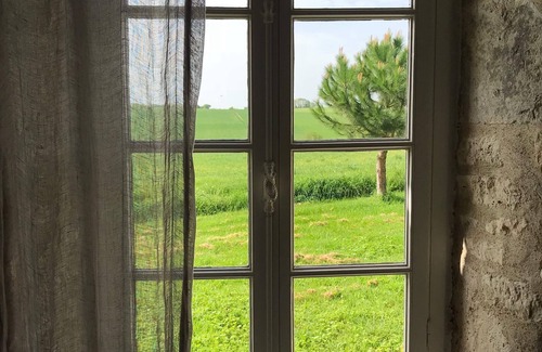 The Pressoir has 2 bedrooms, one double and one twin. The kitchen is eqipped with a gas cooker, fridge, washing machine, microwave, iron & board. Overlooking open countryside. We are situated in the Charente Maritime on the west coast of France. Nearby are the historic towns of La Rochelle and Rochefort & Surgeres. This area is rich in History with many forts, Romanesque churches, castles and Chateaux. Sandy beaches just 20 mins.