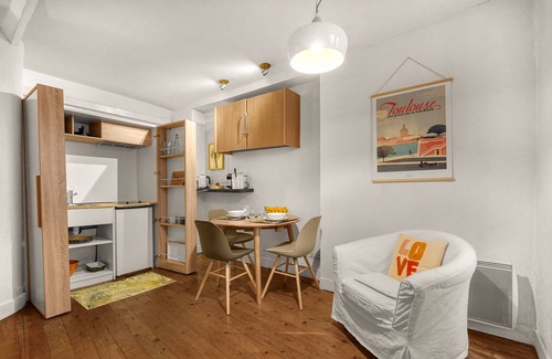 Cocoonr offers you this adorable little cocoon to rent in Toulouse. Located in the heart of the historic centre of Les Carmes, Toulouse's oldest district, the flat overlooks a small, quiet street in Toulouse's hypercentre. Located on the 1st floor, this 25 m² apartment can accommodate up to 2 people and comprises a living room, kitchenette, bedroom and shower room. 4* hotel-quality linen is provided, with beds made up on arrival. We're waiting for you!