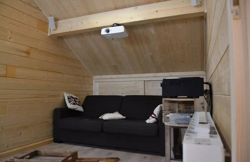 Accommodation: Chalet on 3 levels rented for 12 persons MAXIMUMCUTTING:Bedroom 1 (Nive 0/ 12m2/East): 1 double bed (160x200cm)Bedroom 2 (Nive 0/ 14m2/West): 2x 2 bunk beds (4x 90x190cm)Bedroom 3 (Nive +1/12m2) : 1 sofa bed 2 persons (140x190cm) + home cinema/video projectorBedroom 4 (Nive +2/ 12m2/East): 1 double bed (140x190cm) + TVRoom 5 (Nive +2/ 16m2/West): 2 single beds (2x 90x190cm) + TVBedding with duvets.EQUIPMENT:Living Room (Nive +1-40m2/Northwest-East): - Kitchen corner: oven, microwave, dishwasher, refrigerator/freezer, induction plate (3 fireplaces). - Living area: wood stove (wood provided), Wifi.Bathroom 1 (Nivel 0): washbasin, shower, hairdryer. Bathroom 2 (Nive+2): washbasin, bathtub, hairdryer.2 independent toilets (Niv 0 and Niv +2). Laundry (Niv 0): washing machine, dryer, shoe dryer.SERVICES/OBSERVATIONS: Pets refused. Ski/bike room. Terrace (19m2/West) with garden furniture. Private parking (3 seats).HIVER: - French school holidays of Christmas, New Year's Day and February: bed linen, toilet and house linen provided, end of stay cleaning included- Other periods and short stays: bed linen, toilet and house linen not provided, end-of-stay cleaning not includedETE: bed linen, toilet and house linen not provided, end of stay cleaning not includedCAUTION: Dematerialized payment deposit before arrival.