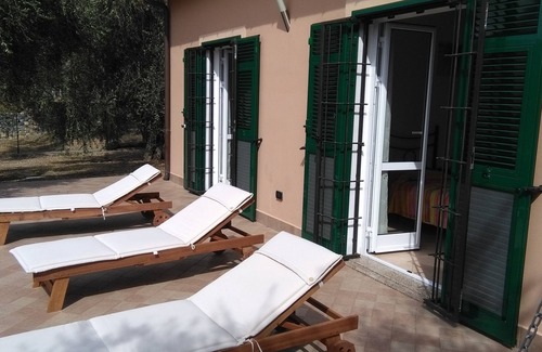 A few kilometers from the sea, villa of about 110 m, recently built surrounded by about 1000 square meters of land of secular olive trees entirely fenced and for the exclusive use of guests.