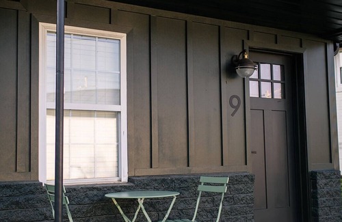This tiny home at Mane & Co is located just minutes from downtown, while providing an easy escape to the interstate, main highways, shopping, eating, and parks. These home is tastefully designed, simplistic, cozy, and thoughtful. The stocked kitchenette provides a sink, mini fridge/freezer, stovetop, and microwave for eating-in along with everything you need for your morning cup of coffee. Your room is furnished with a queen-sized bed, small dining area and a smart TV.