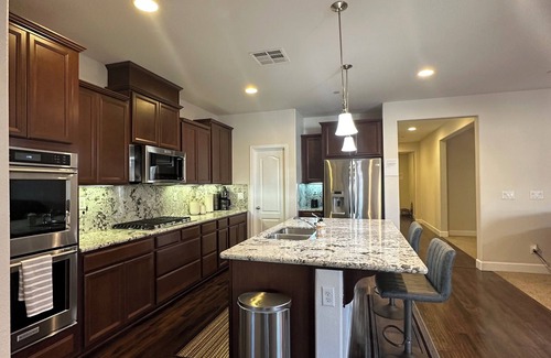 Escape to this beautiful house in picturesque Lincoln. With 3 bedrooms including 1 king bed and 2 queen beds, this is a newly built home with its modern touches, is perfect for a family retreat or a relaxing vacation. Enjoy the convenience of all of its amenities like the large pool, cozy hot tub, patio seating area, AC, heating, WiFi, Large Smart TV, In-house washer and dryer, a soaking tub in the primary bathroom and swing in shutter panels to bring in lots of natural light. Feel free to relax in the second living room with included sofa bed for extra sleeping space. Our place will help you feel at home while you're traveling in Lincoln.