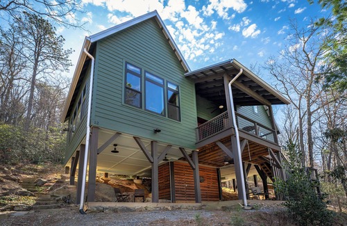 Please note: This house is dog-friendly, with a $100.00 non-refundable fee per dog (maximum of two). Sorry, this home is not cat-friendly due to common allergies. This home is located on a gravel road with a gravel driveway. AWD/4WD is recommended but not required. Accessing this treehouse-style cabin requires navigating one set of stone steps and one flight of wooden steps to reach the entrance, which may not be suitable for guests with limited mobility. There are 2 exterior cameras, one facing the driveway and one facing the brick patio.