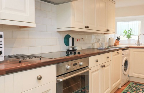 Little Coombe is a house consisting of a kitchen with electric oven and hob, microwave, fridge/freezer, dishwasher, and washing machine, a dining room with woodburning stove and dining seating for eight people, and a sitting room with woodburning stove and TV. The bedrooms consist of a king-size with Juliet balcony, king-size, twin, and child's bunk bed, serviced by a bathroom, shower room, and cloakroom. Outside, there is an enclosed rear garden with lawn, patio, and furniture and off-road parking for two cars. Two well-behaved dogs are welcome. Sorry, no smoking. You'll find a shop and pub in 0.5 miles. WiFi, fuel, power, starter pack for woodburning stoves, bed linen, and towels are included in the rent. Stay at Little Coombe for your next picture-perfect holiday.