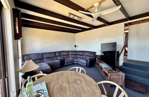 1 king bedroom + 1 queen bedroom, a spacious lounge and functional kitchen with dual fuel stove/oven, and microwave provide a comfortable stay. There is air conditioning to the main bedroom, which can also adequately warm or cool the living dining area which has a ceiling fan.