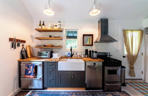 An eclectic, peaceful cabin on a lush 1.5 acre piece of land just outside of Woodstock. Perfect for a couple, a creative retreat, or just to escape the bustle of the city for a spell.