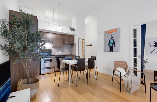 Experience Montreal like a local. Stay in this Spacious Premium Deluxe 1-Bedroom Mezzanine Loft in the heart of Plateau Mont-Royal, just minutes from Downtown. Ideal for families, group getaways, or business travelers, this stylish retreat features high ceilings, curated artwork, modern furnishings, a cozy lounge, Smart TV, fast Wi-Fi, and a fully equipped kitchen for cooking or entertaining. A true Guest Favorite. Book now and feel the LiV MTL difference!