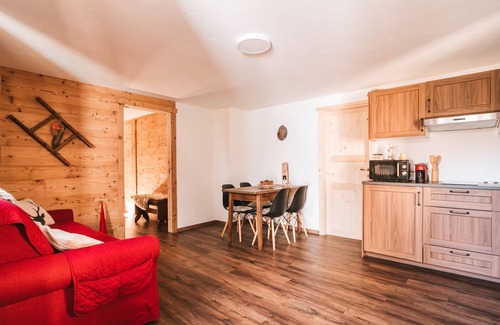 The recently renovated chalet measures about 48 sqm and is on the ground floor of a stone house in a small mountain village. It has a private entrance and a small equipped outdoor area.