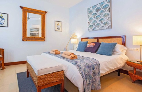 Located in a quiet cul-de-sac, you will find the delightful Villa Captains Retreat. Just a short walk away you will discover the exclusive marina with a wide selection of restaurants, bars, designer stores, supermarket and weekly market. Here you can also enjoy a drink in one of the outdoor bars while watching the beautiful yachts, sailboats and waterfront leisure activities, while the bustling resort of Puerto Del Carmen is just a 5-minute drive away. Inside, the property features a nautical style throughout, with bright interiors and comfortable furnishings. On one level, you'll find a large open-plan living area where you can enjoy relaxing evenings in front of the TV. The fully equipped kitchen and dining area provide the perfect space for the family to enjoy home-cooked meals together, and there are three bedrooms, all with en-suite bathrooms. Patio doors open onto a covered terrace where you can dine al fresco while watching the sunset and spend relaxing days by your own private swimming pool.