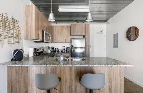 Lodgeur | Vibrant & stylish 1BR loft | Midtown is located in Midtown. Lodgeur | Vibrant & stylish 1BR loft | Midtown provides accommodation, featuring Fireplace/Heating, Air Conditioner, Pool, among other amenities. This Apartment features Fireplace/Heating, Air Conditioner, Pool, to make your stay a comfortable one.
