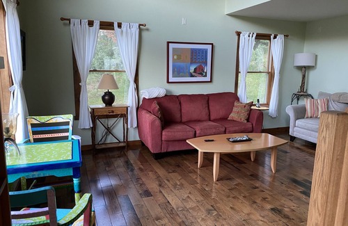Come revive in this modern A-Frame home overlooking Pine Creek! Nestled in a beautiful gorge, this open, modern three bedroom home sits up on the mountainside overlooking the tranquil Pine Creek and adjacent 57 miles of the Rail Trail. The A-Frame structure provides a large expanse of windows looking out onto the spectacular creek view and passing wildlife including deer, turkey, black bears, and bald eagles. The main floor supports an open floor plan with adjoining kitchen, dining, and living room. Two large private bedrooms and a bathroom also occupy the main floor. A beautiful wooden staircase in the middle of the main floor leads up to a large, open master bedroom loft. Each bedroom has a queen bed, with additional space in each for air mattresses as needed. The Pine Creek area offers many outdoor activities including fishing, fly-fishing, hunting, canoeing, kayaking, rafting, biking, hiking, and skiing. Williamsport, home of Little League Baseball, and Pennsylvania's Grand Canyon are both within a 35-mile drive. If you are looking for a retreat following a Penn State football game, the university is 65 miles away. There are many nearby taverns for a hassle-free dinner out, and a couple of general stores with fly-fishing supplies and guide services.