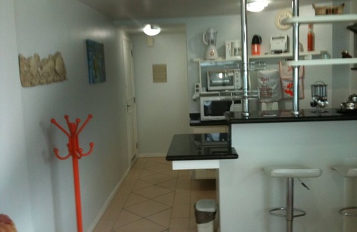 Apartment of 33 square meters, completely furnished with a double bed, a sofa bunk bed, a TV, a fridge, a refrigerator, an electric stove, microwave, toaster oven, blender, coffee maker, sandwich maker, air conditioning, a table round with four chairs, a bathroom, side and front sea view, Wi-Fi and a parking space, DVD, hair dryer, mobile grid for child protection in bed
