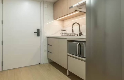 Stay just one block from the metro, with easy access to Avenida Paulista and Ibirapuera Park. Enjoy a comfortable queen-size hotel-standard bed in a bright, air-conditioned space. Unwind with a peaceful view of lush greenery through the window. The cozy mezzanine features an extra double bed, perfect for families or small groups. Safe building with self-check-in and a supermarket on the ground floor for added convenience. Your perfect home in the city