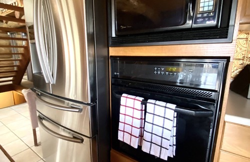 Our beautiful Log Cabin is our home away from home. The open concept kitchen and living room is where you can turn the fireplace on and relax. The loft style upper floor is home to the luxury bathroom with the jacuzzi tub. The lower level is where you can enjoy a board game or a fun game of darts by the wood burning stove.