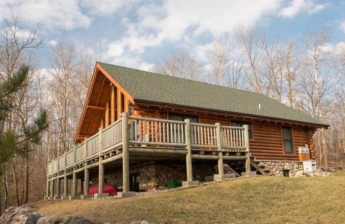 You will have an outstanding time during your log cabin stay on scenic Juggler Lake in Northern Minnesota! Located approximately 220 miles northwest of the Twin Cities, the property includes two homes. The main cabin is located on the lake and includes four bedrooms, two bathrooms one with a copper soaking tub, a large open kitchen and dining area, and a sleeping loft. The deck faces west and offers dramatic sunset views in the early evenings.