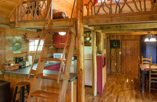 Conveniently located in Hot Springs, NC, near impressive attractions such as the Biltmore Estate and the Appalachian Trail, Bear Creek Cabins has a lot to offer no matter what your interests might be. Our "Evergreen" authentic log cabin is perfect for a relaxing vacation. This rustic getaway has a one-bedroom loft with a king size bed. It contains a moderately equipped kitchen and all linens are supplied. There are many amenities available to make your vacation a truly memorable experience.