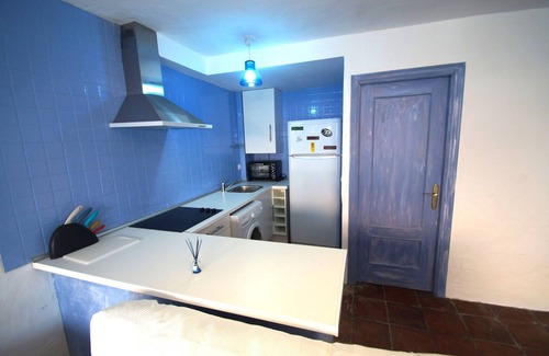 6) Kitchenette in the living room has all new furniture, hob, hood, lamp, oven and toaster. The refrigerator is especially wide and is the only electrodomñéstico that is not brand new.