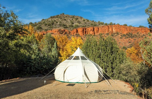 Discover an unforgettable escape at our Sedona Lotus Belle, where luxury meets nature under the vast, glittering night sky. Nestled in a secluded paradise, our glamping site offers a unique blend of comfort and awe-inspiring celestial views. Immerse yourself in nature's tranquility while enjoying the plush amenities of our stylish tents, meticulously designed for a cozy getaway. Escape the ordinary, and let the cosmos be your guide at our celestial oasis.