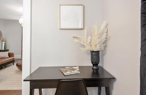 The townhome is divided into two fundamental areas which will provide the greatest comfort and well-being, living area features living room with ample seating and Smart TV, dining area with dedicated workspace, modernized kitchen completely equipped, and half bathroom with laundry facilities. 2 Beds and Bath Upstairs.