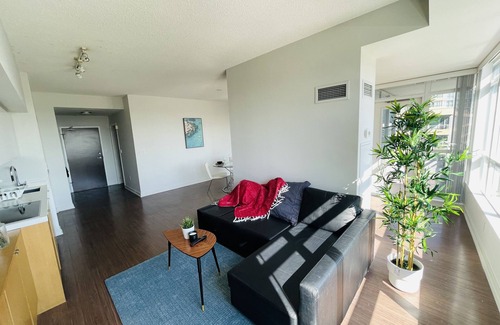 Beautifully designed home in the heart of Toronto, furnished by professional interior designers to give you a cozy feeling and a comfortable stay. Perfect for a romantic movie night in, with Netflix on your TV, and an incredible view of the Toronto skyline outside your window with walking distance access to the lake. This is the perfect home for couples, solo adventurers, business travellers, and families (with kids).